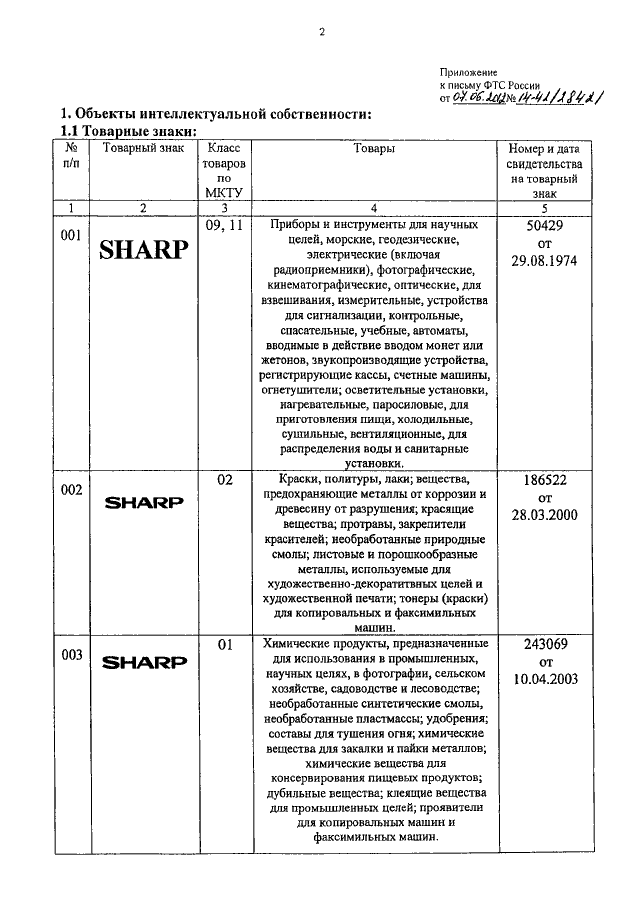 ПИСЬМО ФТС РФ от 07.06.2012 N 14-42/28421 "О ТОВАРНЫХ ЗНАКАХ "SHARP"