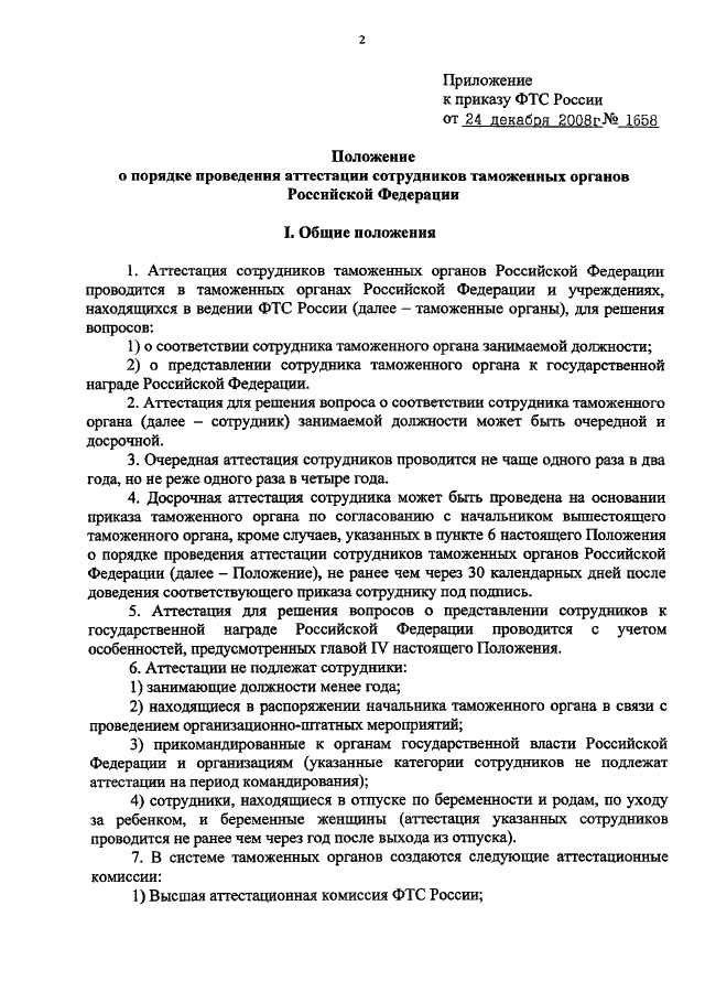 ПРИКАЗ ФТС РФ от 24.12.2008 N 1658