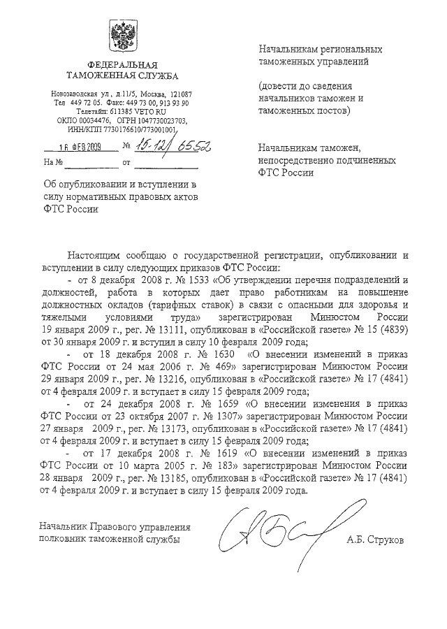 ПИСЬМО ФТС РФ от 16.02.2009 N 15-12/6552