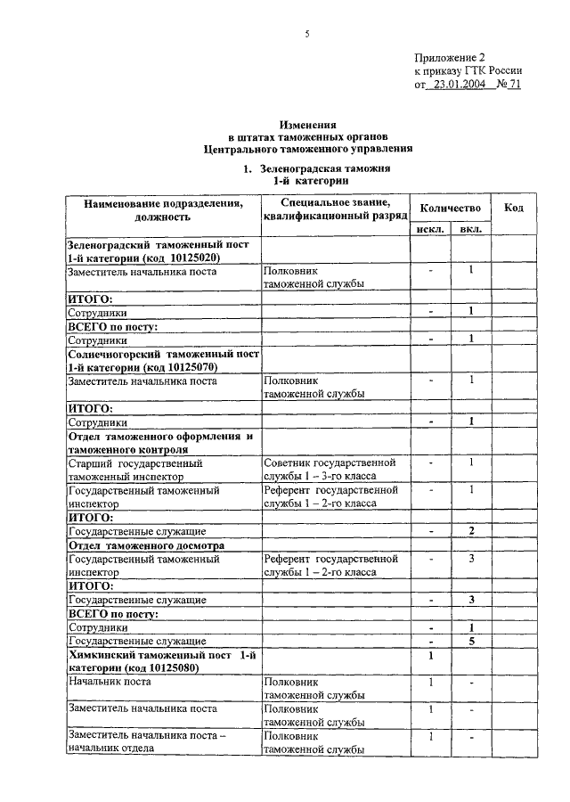 ПРИКАЗ ГТК РФ от 23.01.2004 N 71