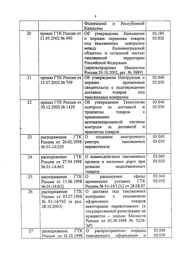 "О ПРИМЕНЕНИИ ПРАВОВЫХ АКТОВ ГТК РОССИИ ПОСЛЕ 1 ЯНВАРЯ 2004 ГОДА"
