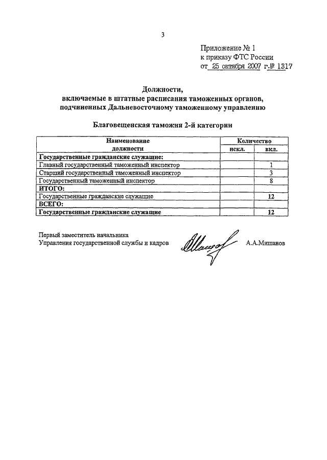 ПРИКАЗ ФТС РФ от 25.10.2007 N 1317