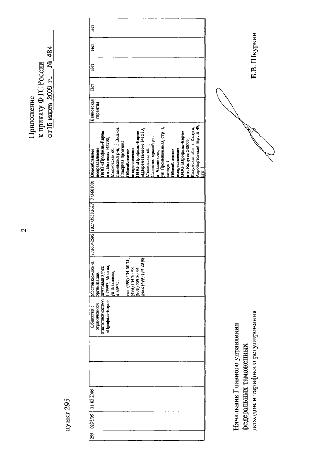 ПРИКАЗ ФТС РФ от 16.03.2009 N 434