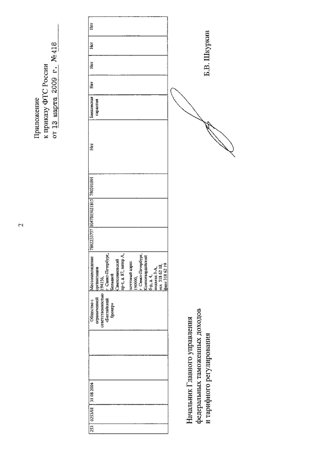 ПРИКАЗ ФТС РФ от 13.03.2009 N 418