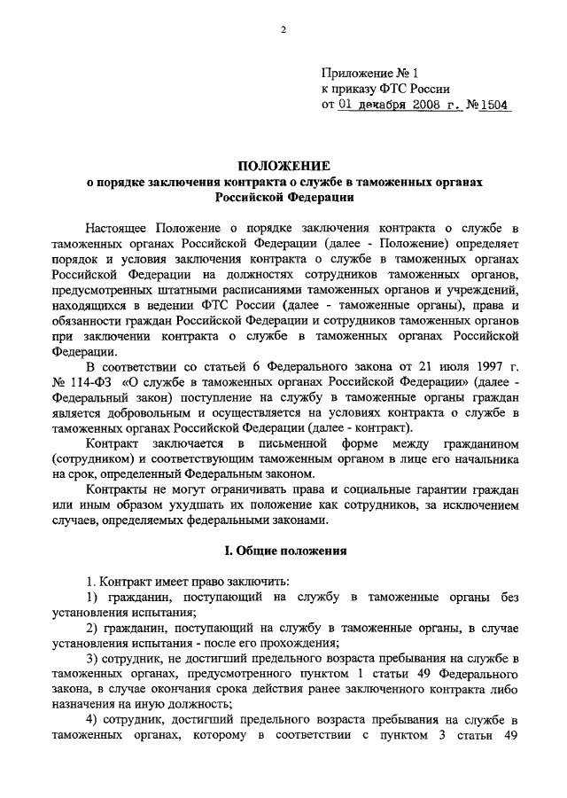 ПРИКАЗ ФТС РФ от 01.12.2008 N 1504