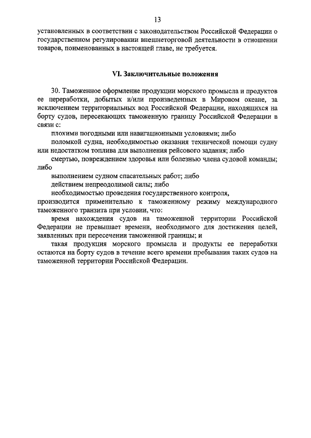 "ОБ УТВЕРЖДЕНИИ ПОРЯДКА СОВЕРШЕНИЯ ТАМОЖЕННЫХ ОПЕРАЦИЙ В ОТНОШЕНИИ ПРОДУКЦИИ МОРСКОГО ПРОМЫСЛА, ПЕРЕМЕЩАЕМОЙ ЧЕРЕЗ ТАМОЖЕННУЮ ГРАНИЦУ РОССИЙСКОЙ ФЕДЕРАЦИИ РЫБОПРОМЫСЛОВЫМИ СУДАМИ"