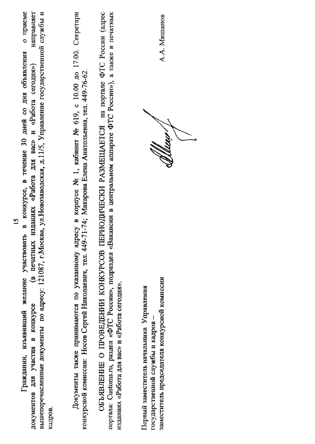 "ОБ ОБЪЯВЛЕНИИ КОНКУРСА НА ЗАМЕЩЕНИЕ ВАКАНТНЫХ ДОЛЖНОСТЕЙ ГОСУДАРСТВЕННОЙ ГРАЖДАНСКОЙ СЛУЖБЫ В ЦЕНТРАЛЬНОМ АППАРАТЕ ФТС РОССИИ"
