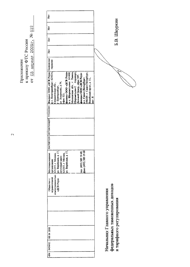 ПРИКАЗ ФТС РФ от 03.04.2009 N 619