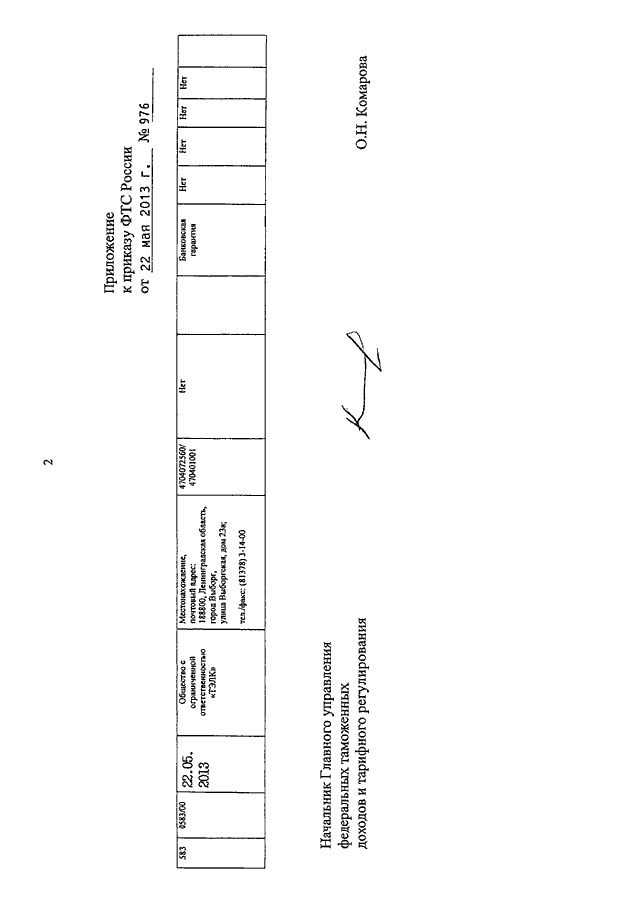 ПРИКАЗ ФТС РФ от 22.05.2013 N 976