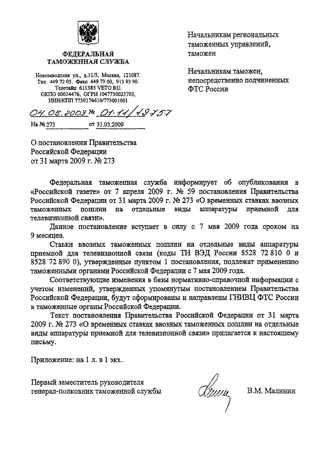 "О ПОСТАНОВЛЕНИИ ПРАВИТЕЛЬСТВА РОССИЙСКОЙ ФЕДЕРАЦИИ ОТ 31 МАРТА 2009 Г. N 273"
