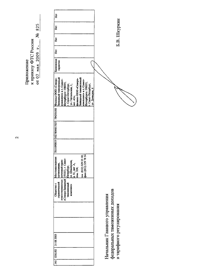 ПРИКАЗ ФТС РФ от 07.05.2009 N 825