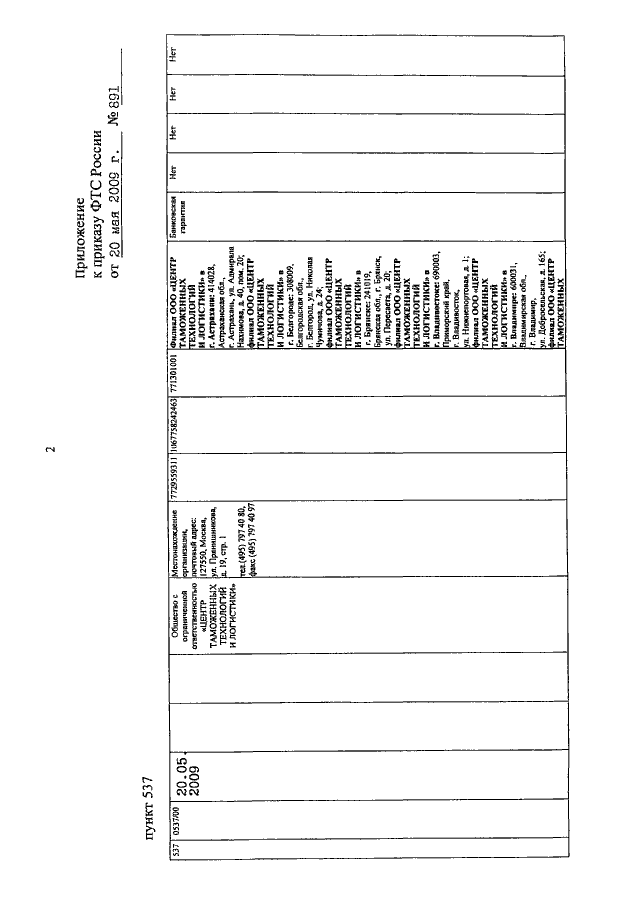 ПРИКАЗ ФТС РФ от 20.05.2009 N 891