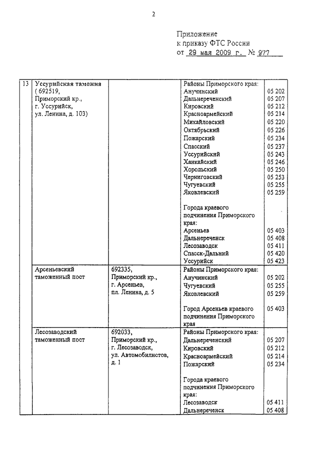 ПРИКАЗ ФТС РФ от 29.05.2009 N 977