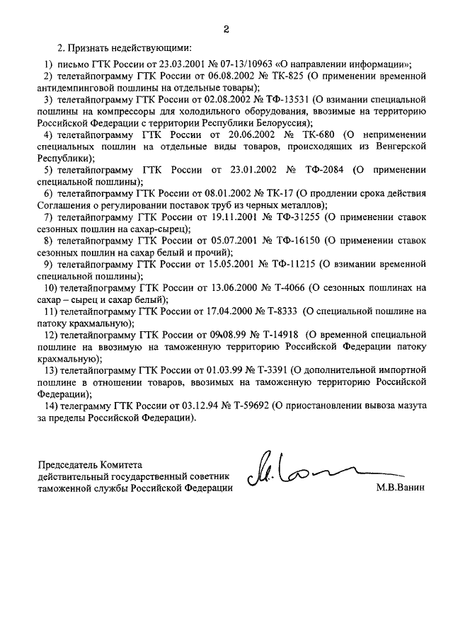 "О ПРИЗНАНИИ УТРАТИВШИМИ СИЛУ НЕКОТОРЫХ ПРАВОВЫХ АКТОВ ГТК РОССИИ ПО ВОПРОСАМ ТАРИФНОГО И НЕТАРИФНОГО РЕГУЛИРОВАНИЯ"
