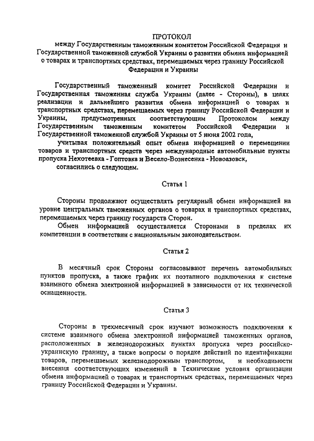 (вместе с "ПРОТОКОЛОМ МЕЖДУ ГОСУДАРСТВЕННЫМ ТАМОЖЕННЫМ КОМИТЕТОМ РОССИЙСКОЙ ФЕДЕРАЦИИ И ГОСУДАРСТВЕННОЙ ТАМОЖЕННОЙ СЛУЖБОЙ УКРАИНЫ О РАЗВИТИИ ОБМЕНА ИНФОРМАЦИЕЙ О ТОВАРАХ И ТРАНСПОРТНЫХ СРЕДСТВАХ, ПЕРЕМЕЩАЕМЫХ ЧЕРЕЗ ГРАНИЦУ РОССИЙСКОЙ ФЕДЕРАЦИИ И УКРАИНЫ" от 24.12.2003)