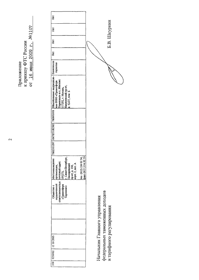 ПРИКАЗ ФТС РФ от 16.06.2009 N 1107