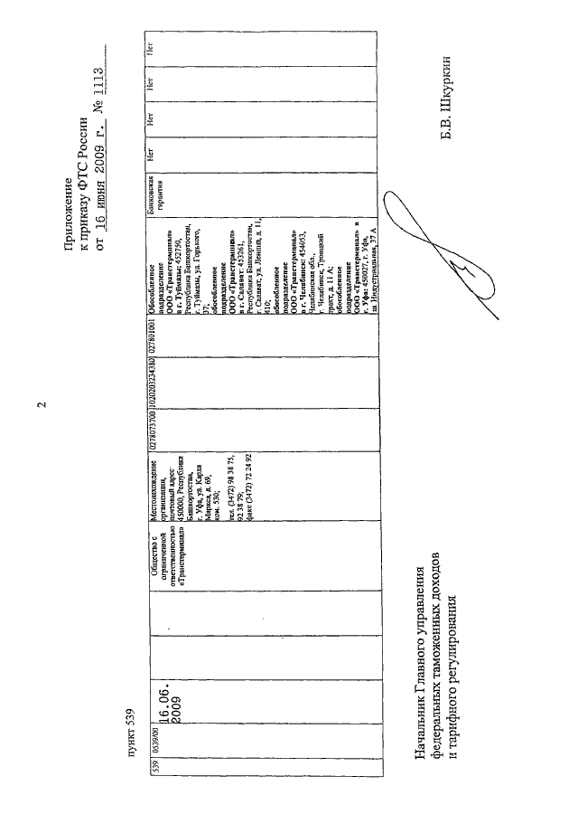 ПРИКАЗ ФТС РФ от 16.06.2009 N 1113