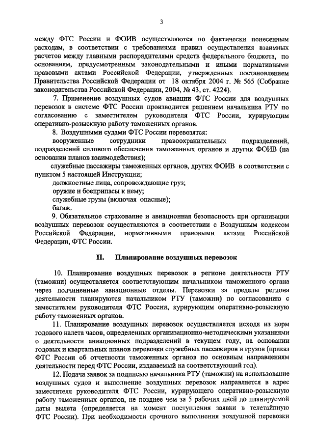 "ОБ УТВЕРЖДЕНИИ ИНСТРУКЦИИ ОБ ОРГАНИЗАЦИИ ВОЗДУШНЫХ ПЕРЕВОЗОК В АВИАЦИИ ФТС РОССИИ"