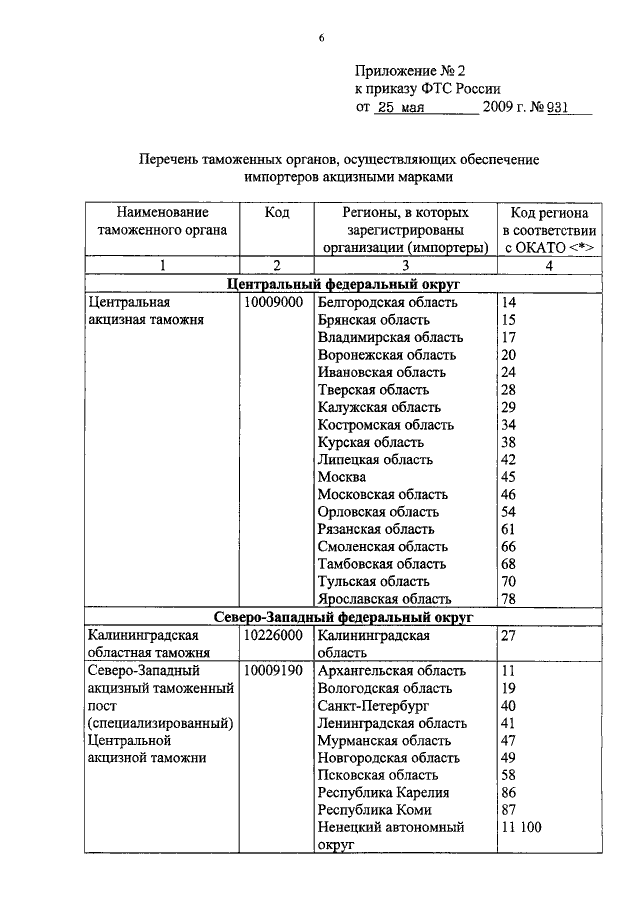 ПРИКАЗ ФТС РФ от 25.05.2009 N 931