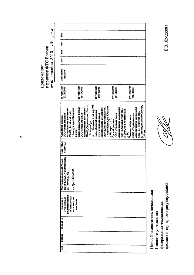ПРИКАЗ ФТС РФ от 06.12.2013 N 2314
