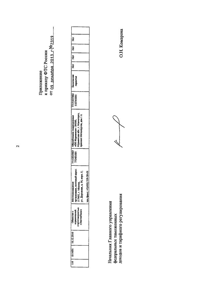 ПРИКАЗ ФТС РФ от 09.12.2013 N 2319