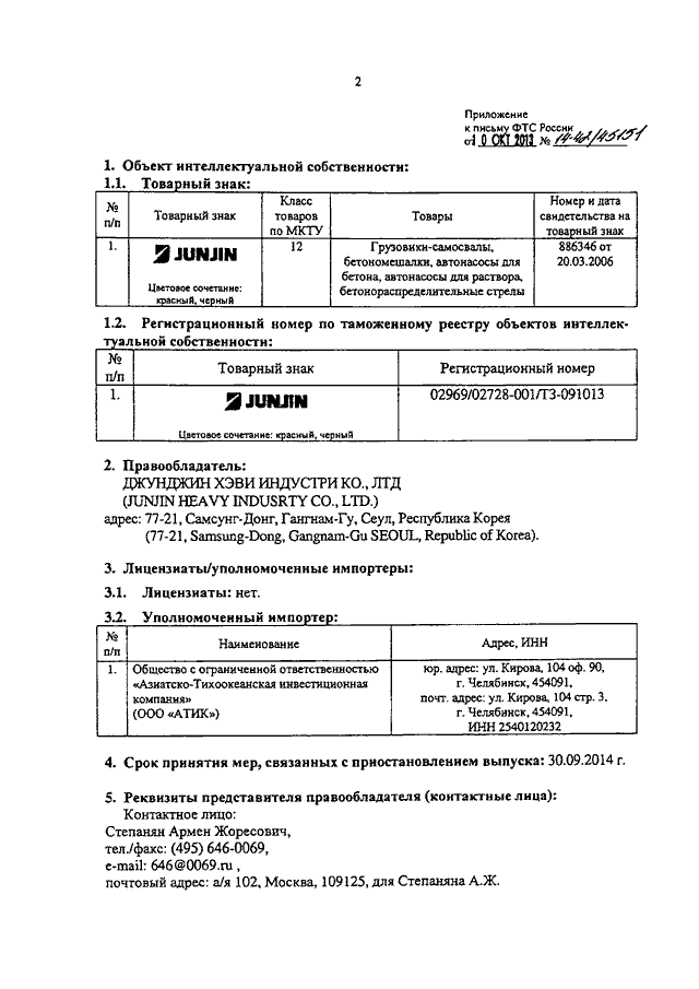ПИСЬМО ФТС РФ от 10.10.2013 N 14-42/45151