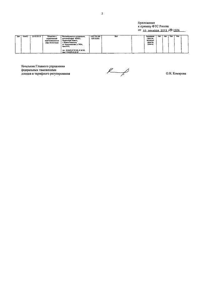 ПРИКАЗ ФТС РФ от 10.12.2013 N 2326