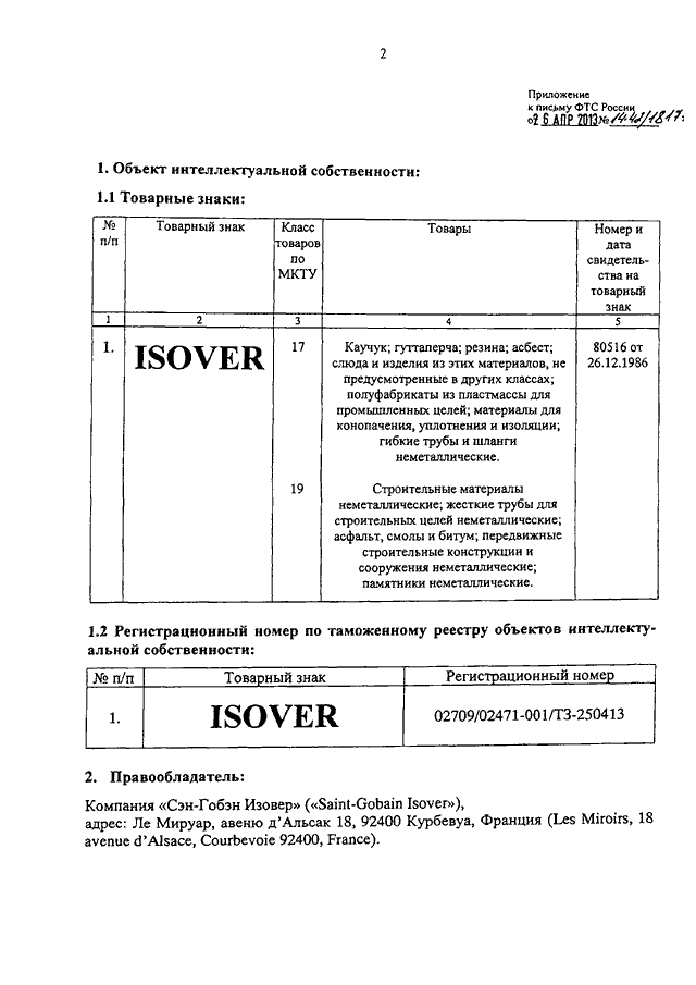 "О ТОВАРНОМ ЗНАКЕ "ISOVER"