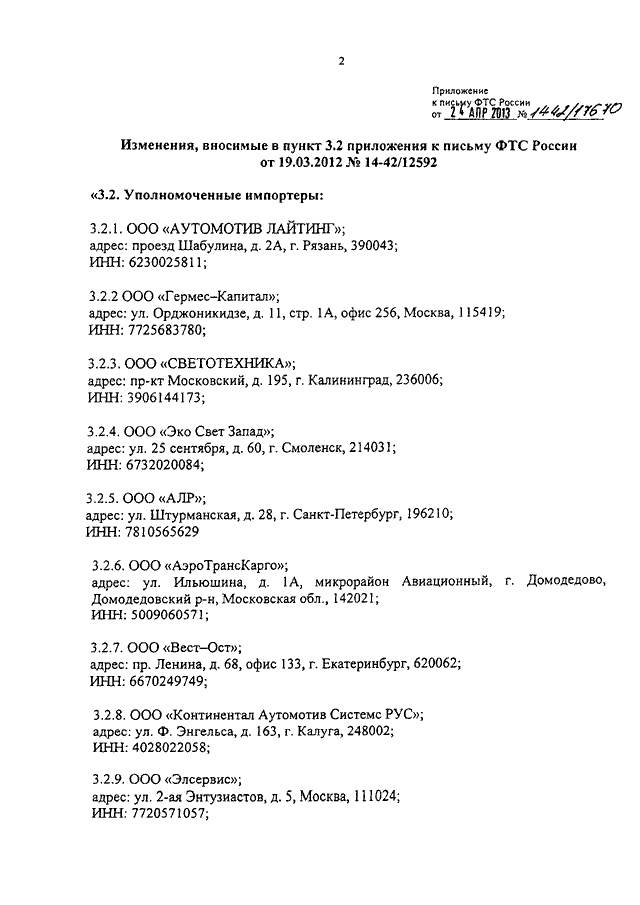 ПИСЬМО ФТС РФ от 24.04.2013 N 14-42/17670
