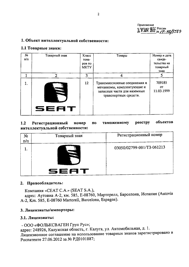 ПИСЬМО ФТС РФ от 09.12.2013 N 14-42/55897