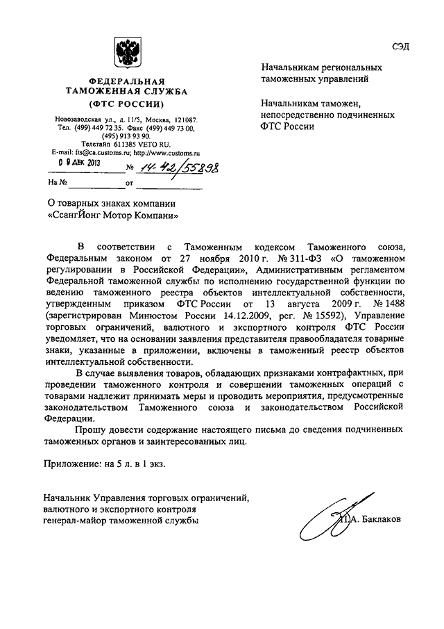 ПИСЬМО ФТС РФ от 09.12.2013 N 14-42/55898