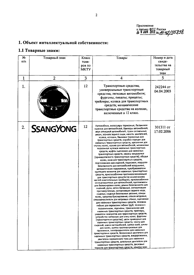 "О ТОВАРНЫХ ЗНАКАХ КОМПАНИИ "ССАНГЙОНГ МОТОР КОМПАНИ"