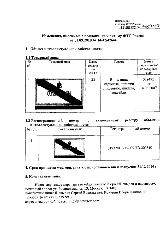 ПИСЬМО ФТС РФ от 16.12.2013 N 14-42/57413