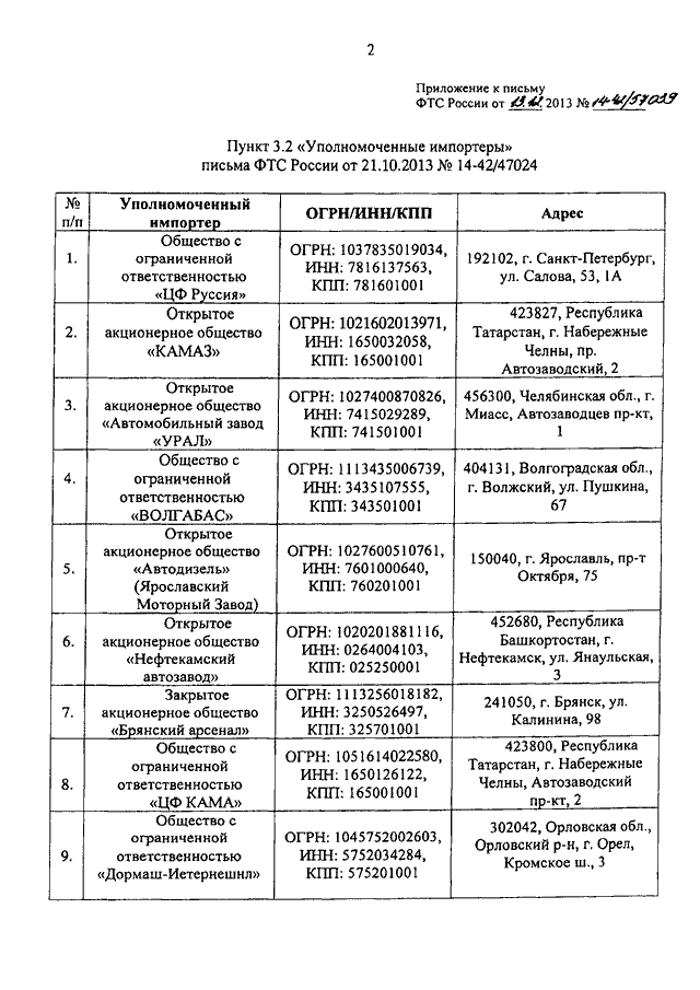 ПИСЬМО ФТС РФ от 13.12.2013 N 14-42/57039