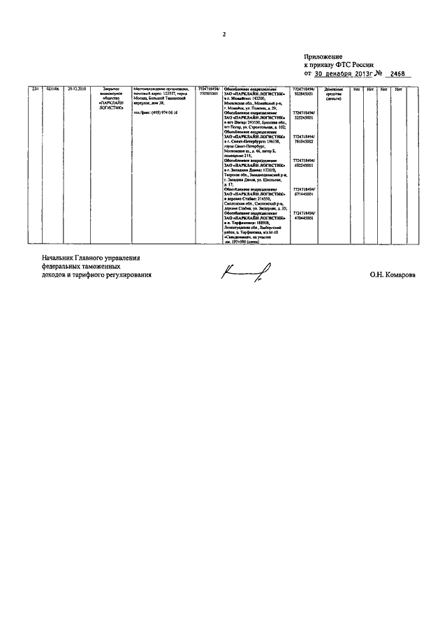ПРИКАЗ ФТС РФ от 30.12.2013 N 2468