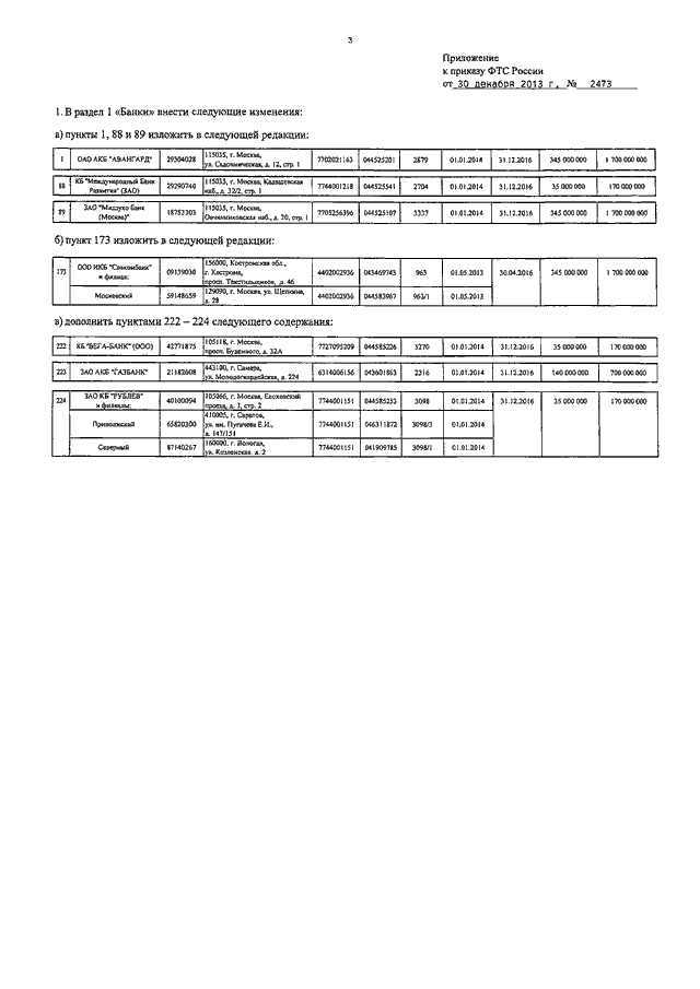 ПРИКАЗ ФТС РФ от 30.12.2013 N 2473