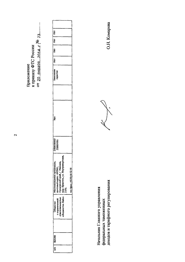 ПРИКАЗ ФТС РФ от 20.01.2014 N 73