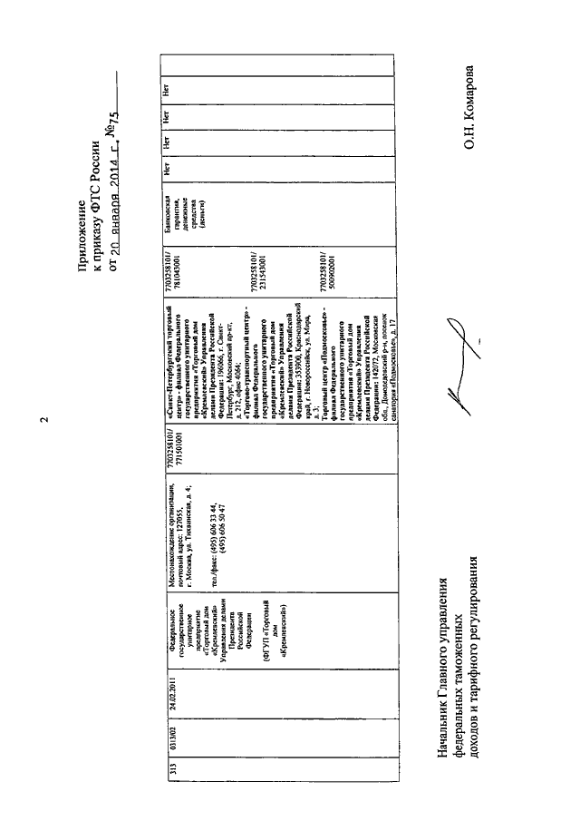 ПРИКАЗ ФТС РФ от 20.01.2014 N 75