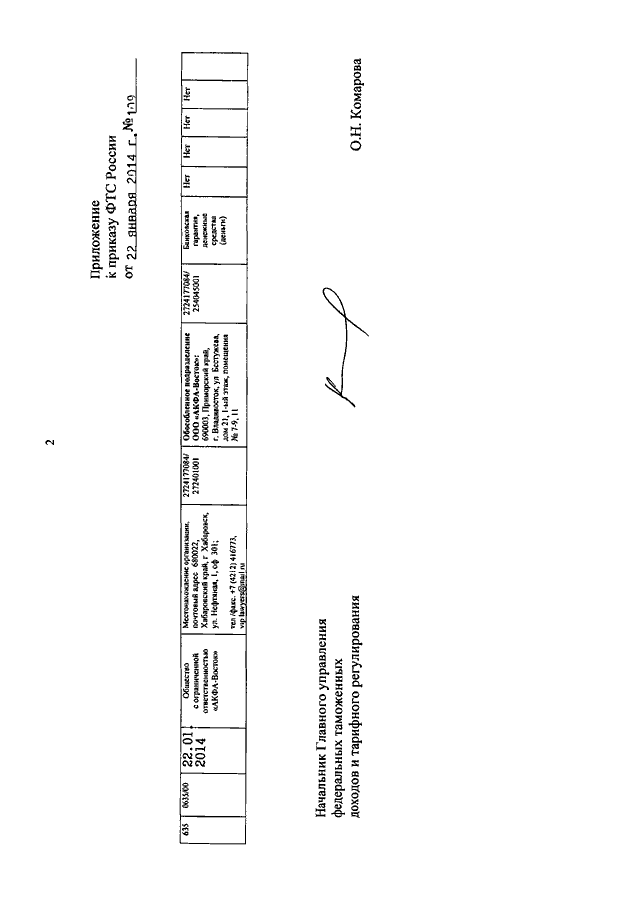 ПРИКАЗ ФТС РФ от 22.01.2014 N 109
