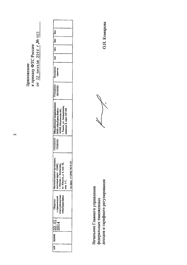 ПРИКАЗ ФТС РФ от 22.01.2014 N 102