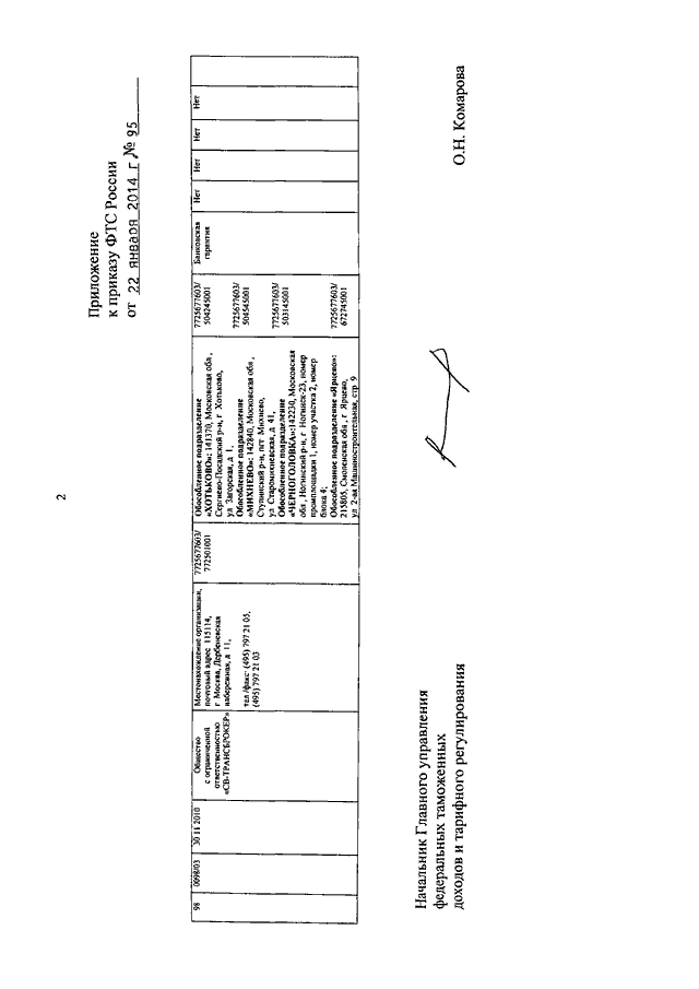 ПРИКАЗ ФТС РФ от 22.01.2014 N 95