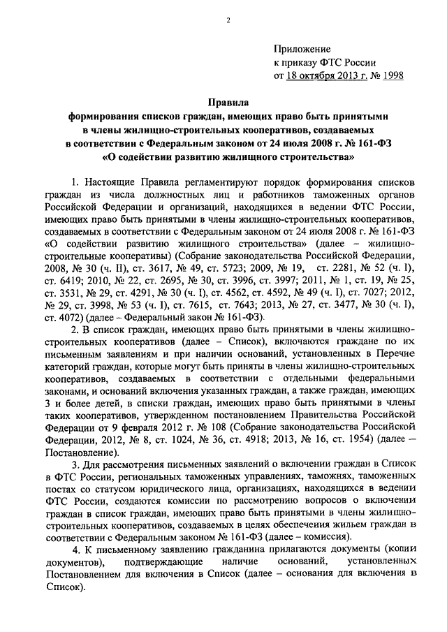 ПРИКАЗ ФТС РФ от 18.10.2013 N 1998