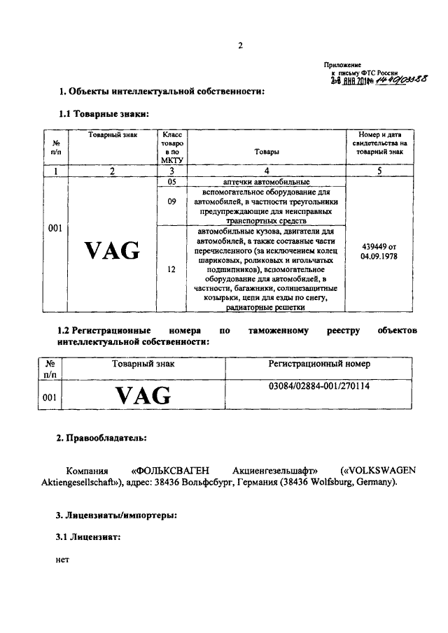"О ТОВАРНЫХ ЗНАКАХ КОМПАНИИ "VOLKSWAGEN AKTIENGESELLSCHAFT"
