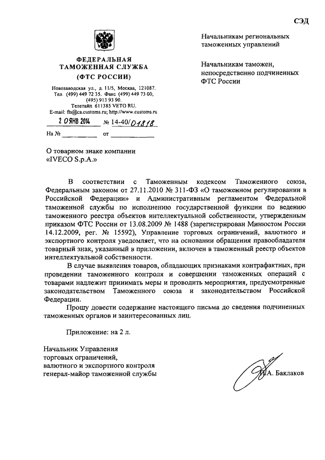 ПИСЬМО ФТС РФ от 20.01.2014 N 14-40/01818