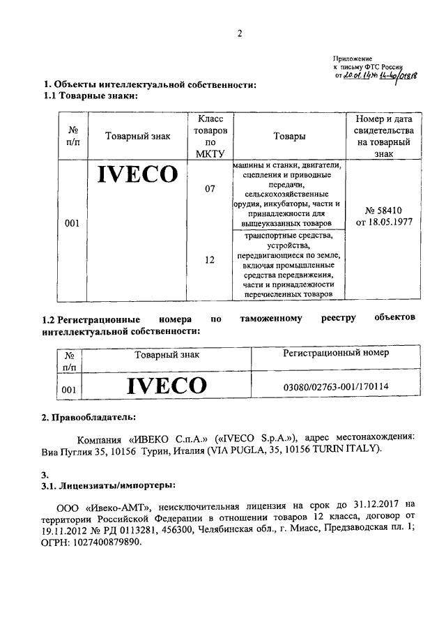 "О ТОВАРНОМ ЗНАКЕ КОМПАНИИ "IVECO S.P.A."
