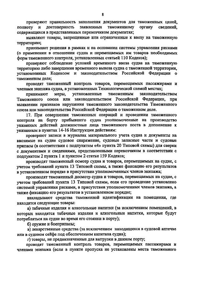 "ОБ УТВЕРЖДЕНИИ ИНСТРУКЦИИ О ДЕЙСТВИЯХ ДОЛЖНОСТНЫХ ЛИЦ ТАМОЖЕННЫХ ОРГАНОВ, СОВЕРШАЮЩИХ ТАМОЖЕННЫЕ ОПЕРАЦИИ И ПРОВОДЯЩИХ ТАМОЖЕННЫЙ КОНТРОЛЬ В ОТНОШЕНИИ СУДОВ, ИСПОЛЬЗУЕМЫХ В ЦЕЛЯХ ТОРГОВОГО МОРЕПЛАВАНИЯ, А ТАКЖЕ ТОВАРОВ И ТРАНСПОРТНЫХ СРЕДСТВ, ПЕРЕМЕЩАЕМЫХ ЧЕРЕЗ ТАМОЖЕННУЮ ГРАНИЦУ ТАМОЖЕННОГО СОЮЗА ЭТИМИ СУДАМИ"