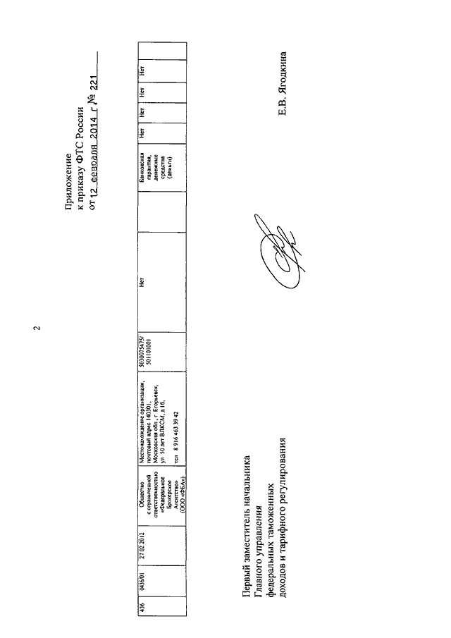 ПРИКАЗ ФТС РФ от 12.02.2014 N 221