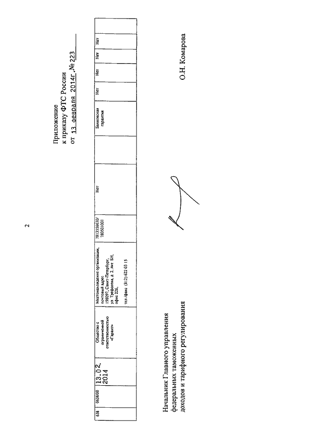 ПРИКАЗ ФТС РФ от 13.02.2014 N 223