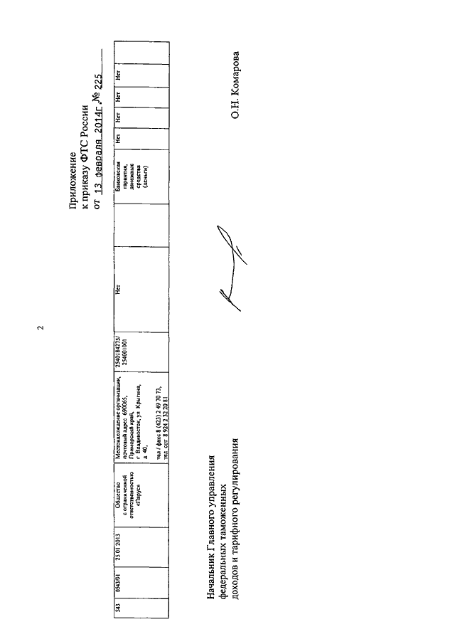 ПРИКАЗ ФТС РФ от 13.02.2014 N 225