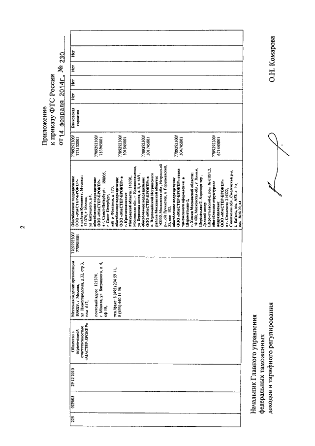 ПРИКАЗ ФТС РФ от 14.02.2014 N 230